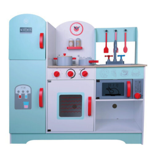 מטבח מעץ לילדים דגם רון עם אורות וצלילים, תנור, מיקרו וכיור כולל אביזרי אפייה ובישול
